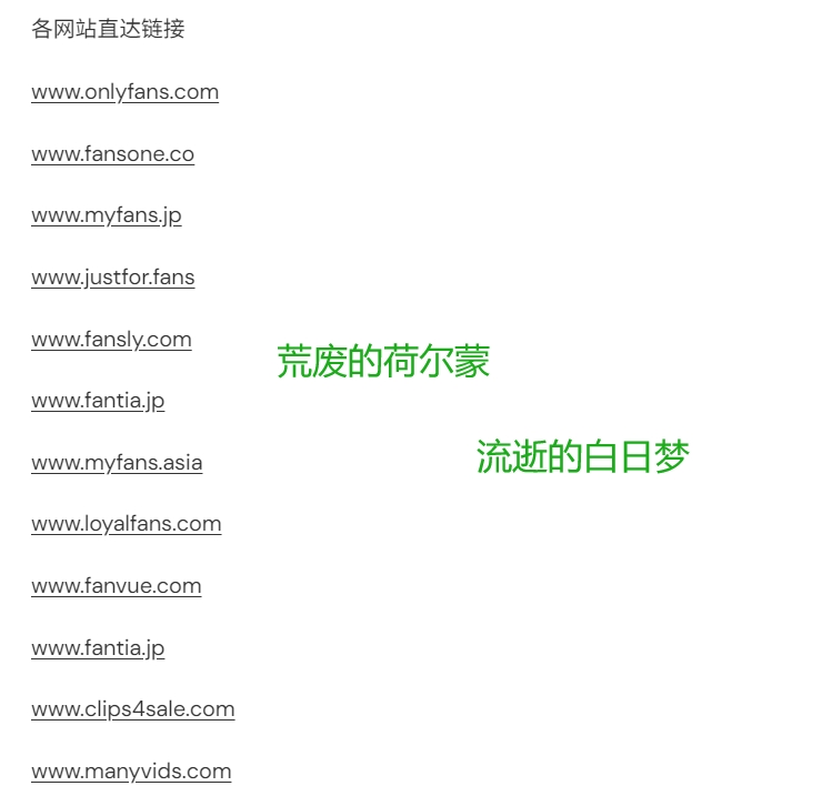 Onlyfans/Justforfans/Fansone/Patreon/Manyvids/Myfans/Fantia/Loyalfans/Clips4sale/Darkfans/Blacktowhite等多平台充值订阅,无需购卡,一条龙服务。荒废的荷尔蒙,流逝的白日梦。